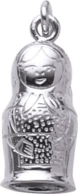 Please note that product images are enlarged to show detail. The actual item is 0.677 - (approx. 5/8 in.) inches long and 0.333 - (approx. 3/8 in.) inches wide. The Matryoshka Doll Charm by Rembrandt Charms is hand-polished with a High Polish finish. The charm shape is 3D. Every Rembrandt charm comes with a heavy-duty jump ring that can be twisted open and easily attached by you. All Rembrandt Charms are guaranteed for life.